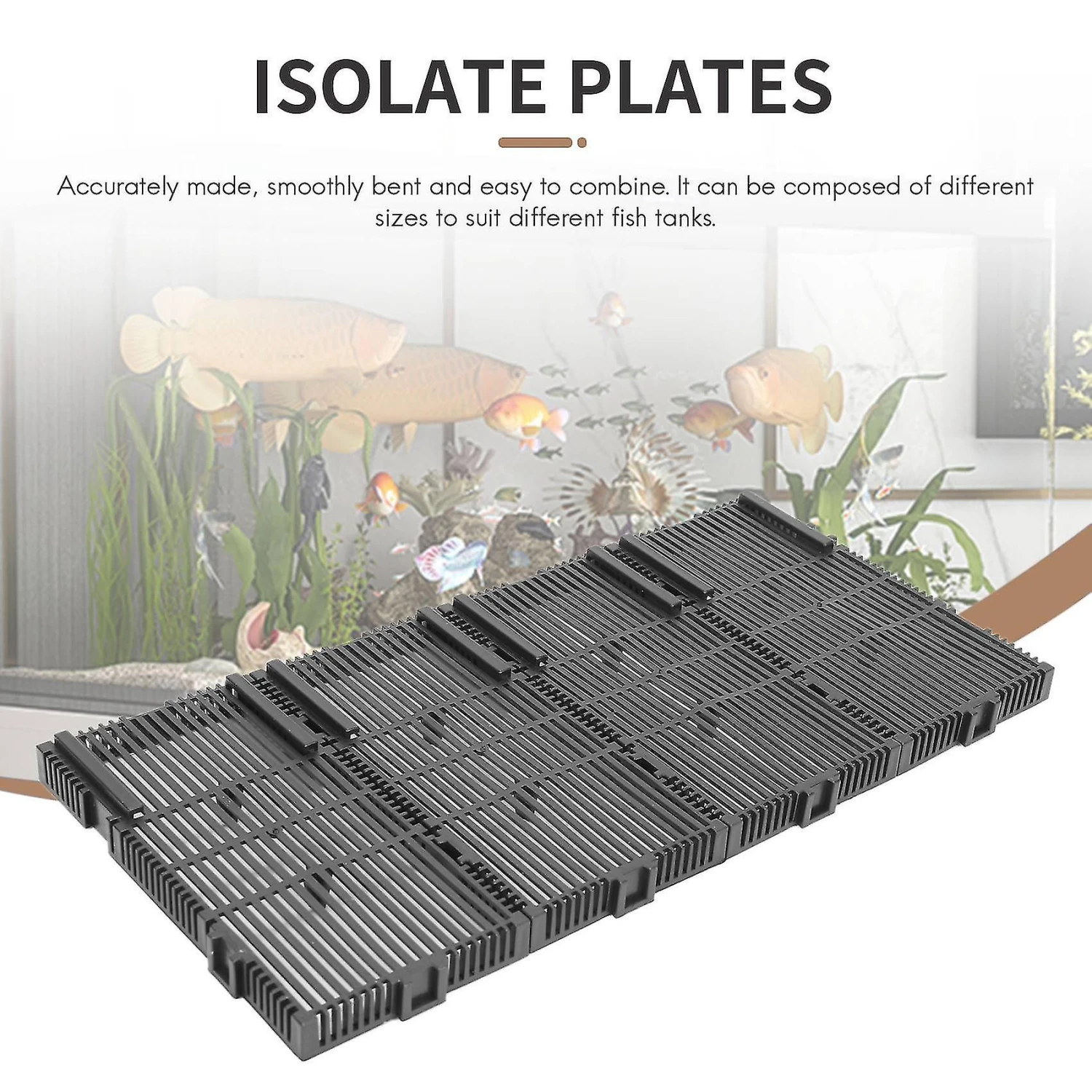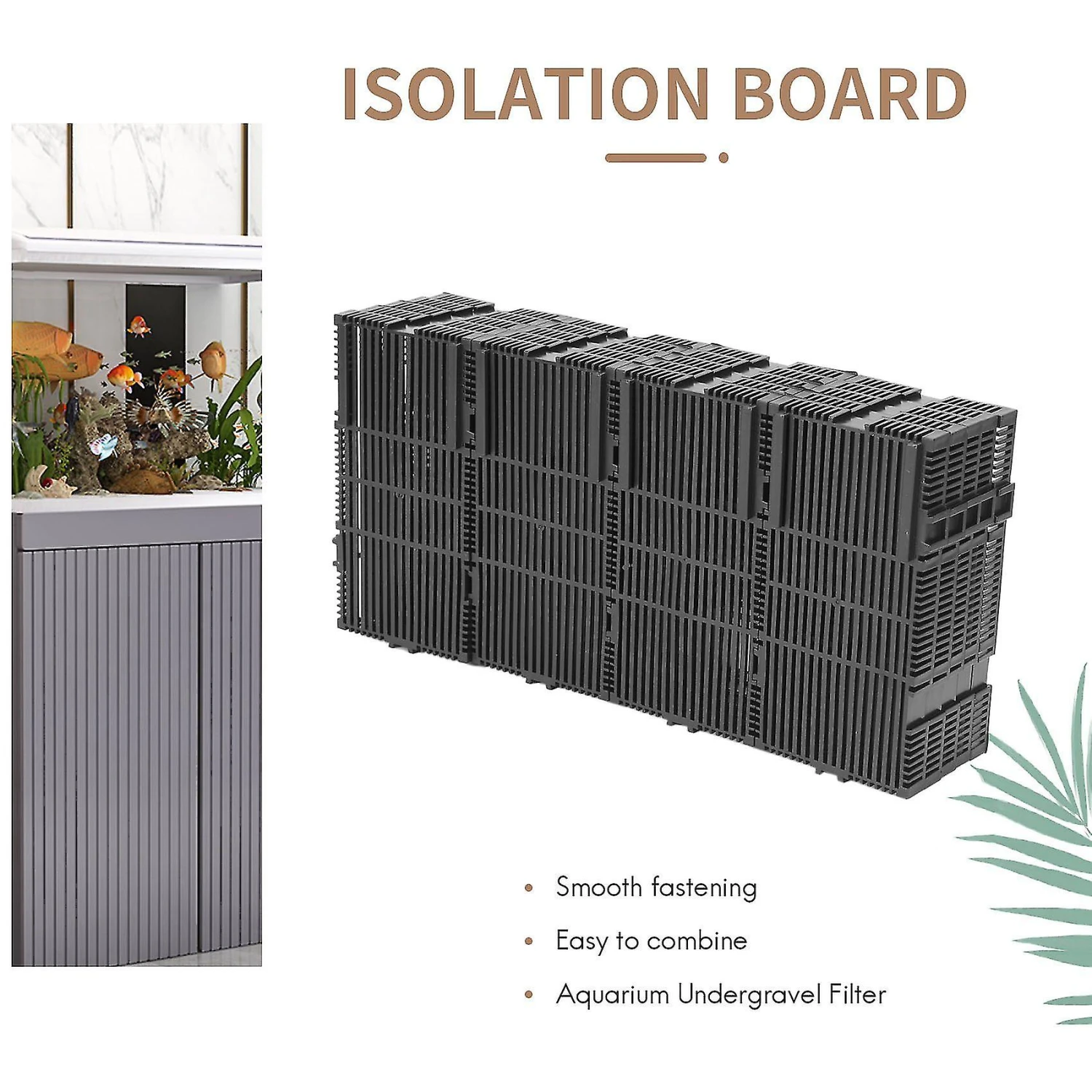 Usage: clean tank and rinse thoroughly, connect the bottom plates according to the size of the tank and place it into the tank, buckle holder on suitable plate, insert holder from top with returnstem and twist to tighten, adjust returnstem according to the height of the tank and lock it with a link.