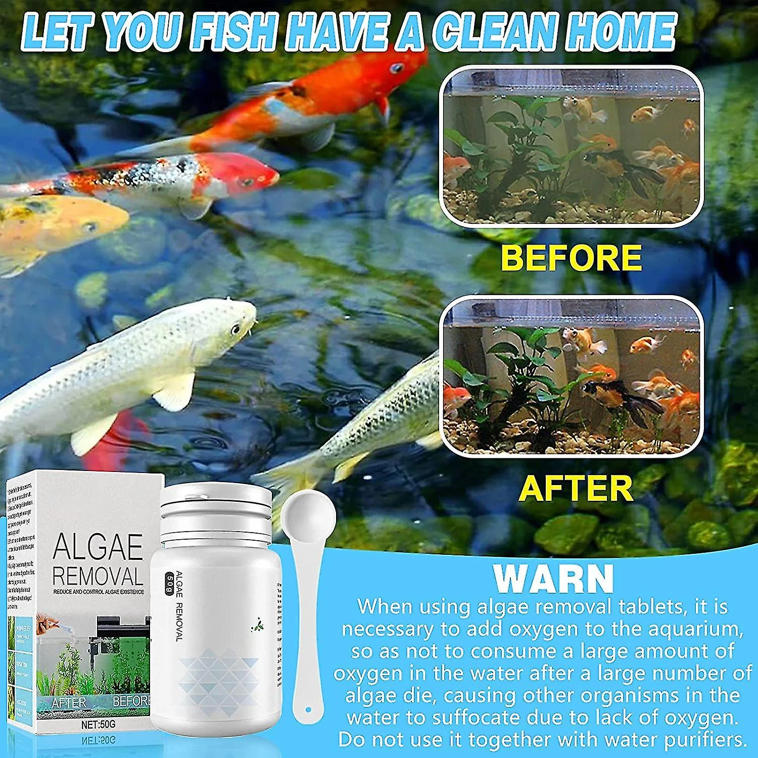 Most Cost-Effective Purifier: Say goodbye to unsightly and foggy water in your ponds and aquariums with our Aquatic Algae Control Purifier. It naturally cleans and controls harmful algae, resulting in sparkling clear and vibrant colors in the water.