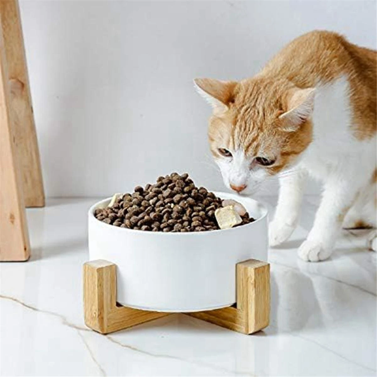 [Reduce Neck Burden] 0.8 inch high wood stand makes pet more comfortable access to get food and water, which promotes the flow of food from the mouth to the stomach and makes swallowing easily.