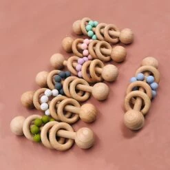 These wooden teether are good gifts for newborn babies and practical educational learning tools.