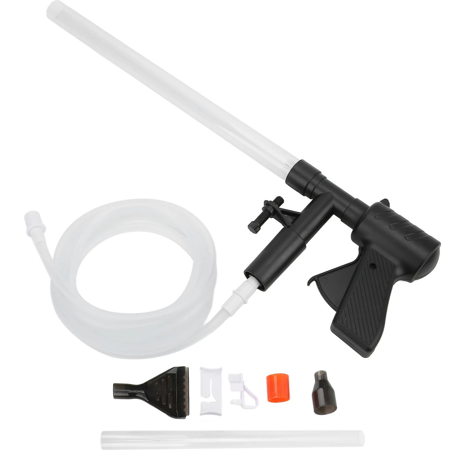 2¡¢[Filtration Function] Humanized design, the aquarium gravel cleaner tube is equipped with a filter flower basket, which can effectively block large sands and prevent clogging.