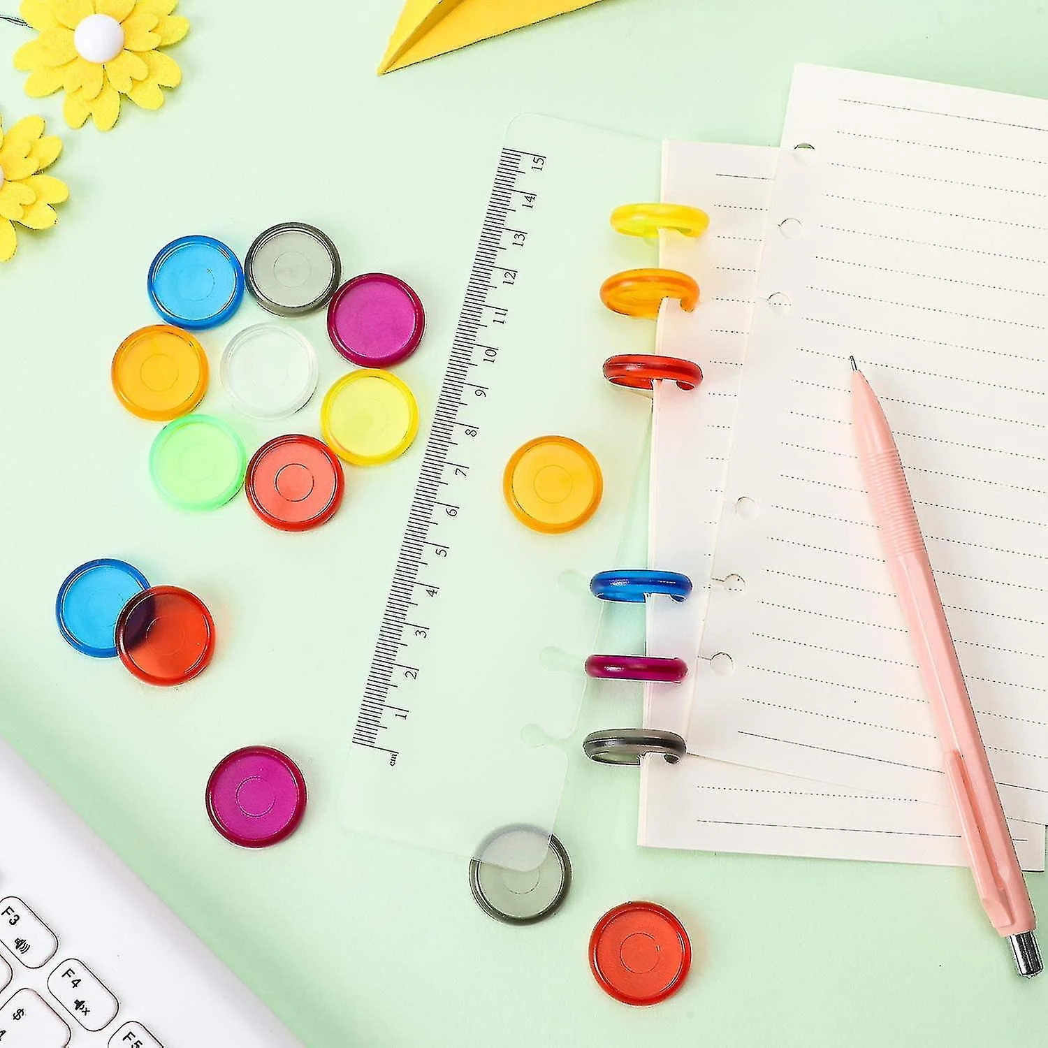 HOW TO APPLY: These multicolor binding ring discs are suitable for arranging your papers, documents, notebook pages, pictures, keeping them organized and looking more neat and clear
