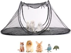 Easy to use: you can quickly open and fold the tent according to the instructions. Pet can easily be put in and out of the kennel tent to open and close comfortably.