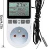 Easier quality: timing open timing stop and timing switch; Just plug it in and select heating/cooling system then it works no spin LCD with accurate display. Connect to cooling and heating systems at the same time. The heating/cooling differential function can be set separately for cooling and heating for temperature control in case of major changes. Temperature alarm alarm: when the temperature exceeds the temperature limit or when a sensor error occurs temperature changes do not always have to be taken into account. Compressor delay protection for compressor control and temperature can also be calibrated. Wide device: This thermostat allows you to control the ambient temperature precisely. Greenhouse fish tank coal crystal heater aquaculture incubator room temperature control home and other places are widely used. Intelligent Temperature Control This thermostat with timer can automatically control the switch of appliances cooling and heating and has the function of intelligent temperature control and intelligent timing. Temperature range: -40~120C Intelligent Temperature Sensor With this thermostat you can accurately control the room temperature. Equipped with cable temperature sensor for real-time measurement. LCD With Accurate Display High-definition LCD display clear and intuitive monitoring of all data accurate real-time temperature control. Accuracy: +/- 1% Timing Accuracy: MAX 10 minutes. F01: Cycle timing mode Cycle timing mode F01 according to the start time (open) / stop time (close) of the working cycle. F02: Timing mode enabled F02 timing mode enabled currently in disabled (delayed) state enabled. F03: Timing stop mode F03 timing stop mode current is on delay (stop time) is off stop countdown is completed output is off and Disabled output. F04: Timer on/off mode F04 timer switch mode the current state is off the delay (start time) is on and the delay (stop time) is off after it is turned on. After the downtime countdown is completed turn off the output and exit the operation. In timingmode when the start time / stop time. Specification: Temperature range: -40~120C Accuracy: +/- 1% Timing Accuracy: MAX 10 minutes Rated voltage: 230VAC 50HZ Rated load: MAX 16A 3680W Temperature display resolution: 0.1 scope of delivery: 1 x Thermostat Socket It can display the measured temperature set the start and stop temperature to control the heating or cooling equipment. Just plug it in and select the heating/cooling system then it works. Storage function after power off; Screen lock protection function.