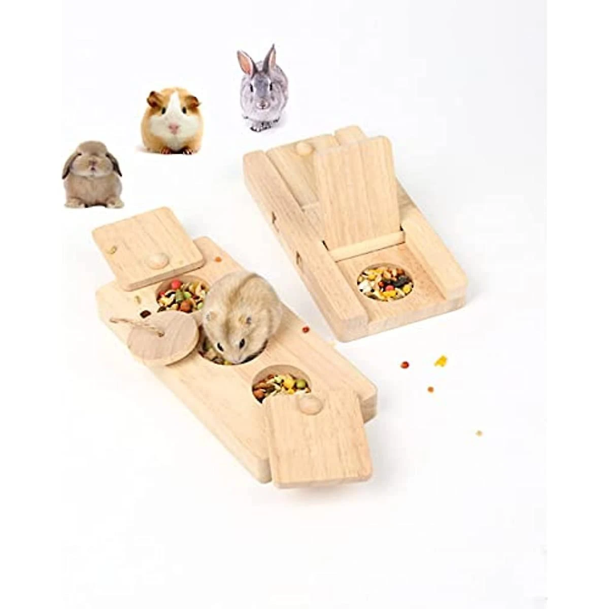 [Packing List]: You will receive 2 wooden animal educational toys, suitable for most news rodents, such as hamsters, rabbits, hedgehogs, chinchillas, parrots and more.